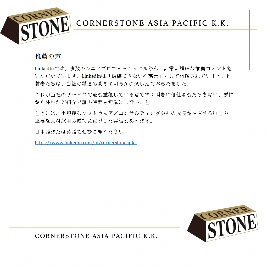 Endorsements made with unusual detail by several senior professionals are viewable on LinkedIn—*the* non-fakeable testimonial source. The referees obviously all enjoyed the accuracy. This is our primary service consideration: Not to disrespect anyone’s time with off-spec introductions which do not add value to both sides.